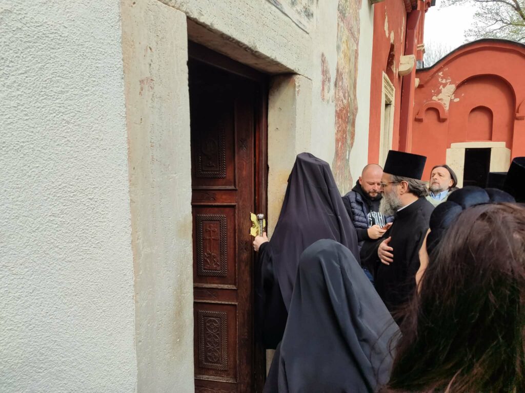 Патријарха су дочекали игуманија манастира Пећке патријаршије мати Харитина са монахињама манастира, пећки свештеници и игуман манастира Свети Архангели отац Михаило, као и верници. Патријарх Порфирије се по доласку у Пећку патријаршију поклонио светим моштима својих претходника архиепископа и патријараха српских.